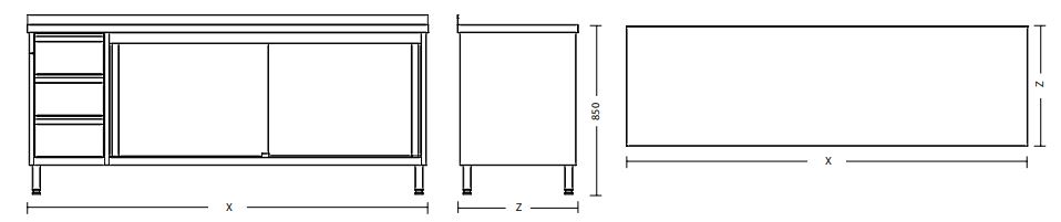 - 3 drawers from the left side (option to order: drawers from right side SP)