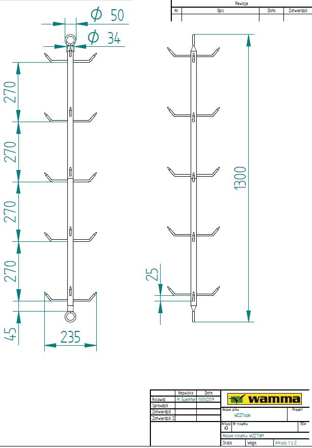 Central bar from pipe 25 x 2 mm